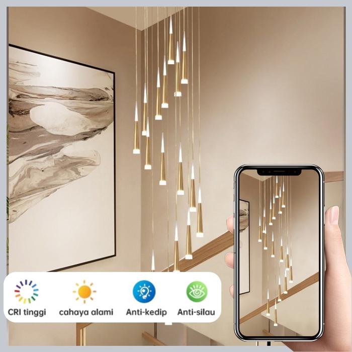 Lampu Tangga Gantung Ruang Tamu Plafon Minimalis Ruang tamu LED Revolving Lampu Gantung Ruang Makan