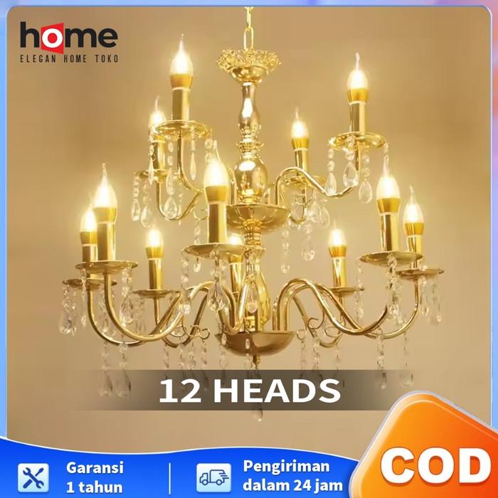 Lampu Gantung Besi Retro Elegan Home 6/8/8+4 Lampu Ruang Tamu Dekorasi Wedding Akrilik
