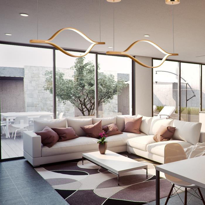 Lampu Gantung LED Minimalis Modern Desain Artistik Geometris Emas Dekorasi Ruang Makan