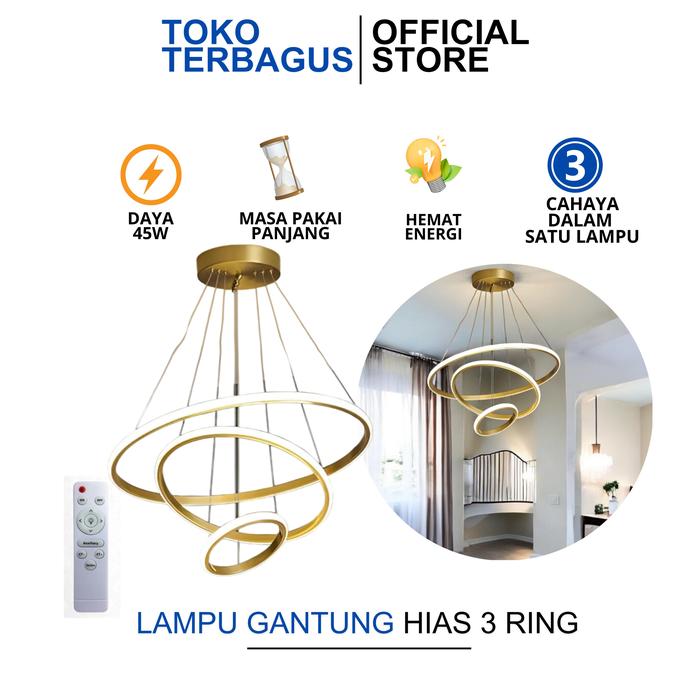 Lampu Gantung Hias Dekorasi Rumah Mewah Bentuk Cincin 3 Ring Premium Chandelier Lamp