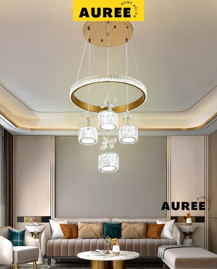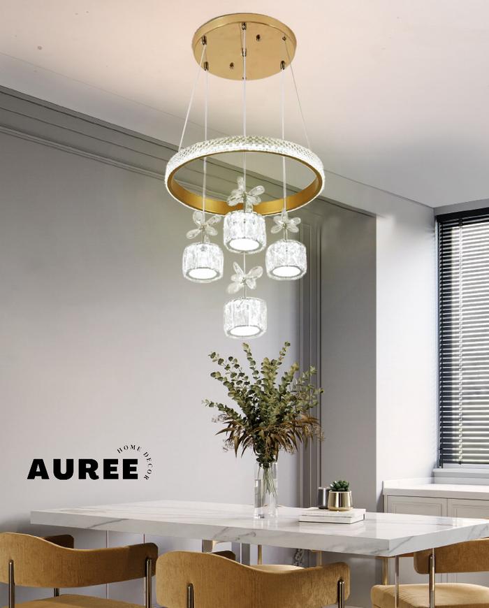 Lampu Gantung Kristal Kaca LED 3 Warna Modern Minimalis Lampu Hias Ruang Tamu Kamar Tidur