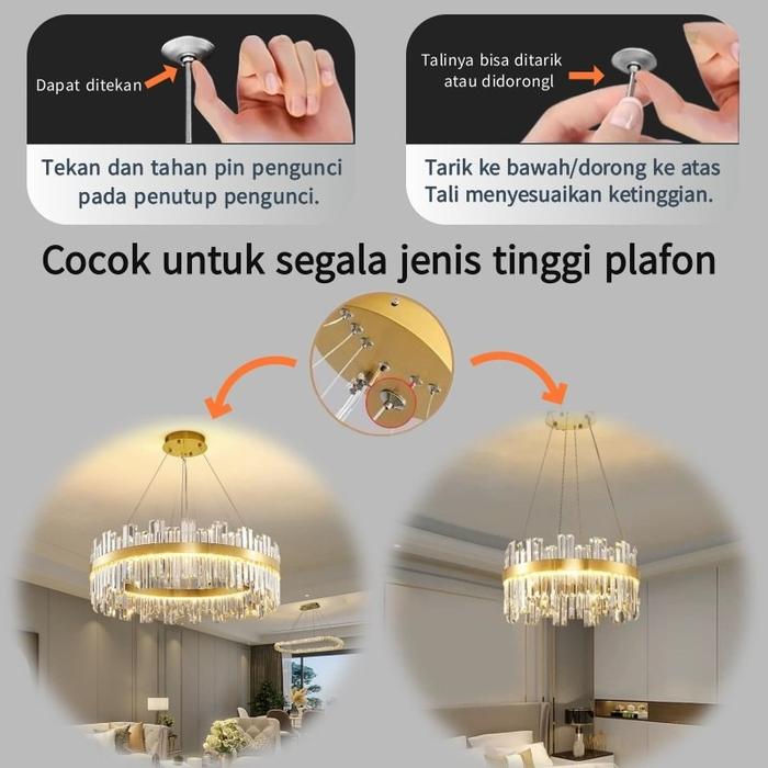 Lampu gantung ruang tamu hias kristal gantung mewah tidur aesthetic led 3 warna plafon minimalis