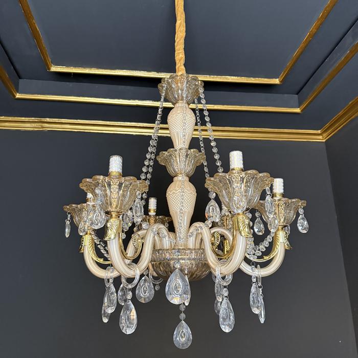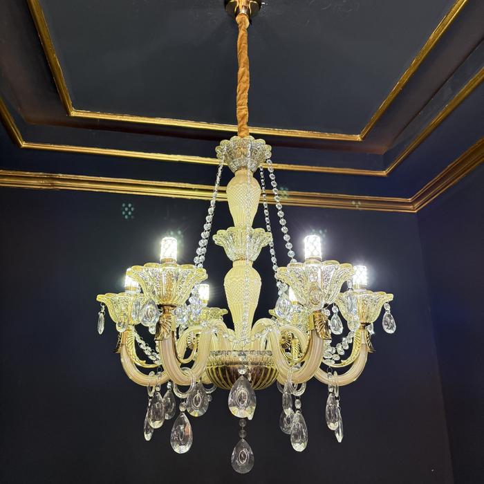 Lampu Lilin Kristal Gantung Gold - Cabang 6 & Cabang 8 / Lampu hias estetik ruang tamu & kamar tidur