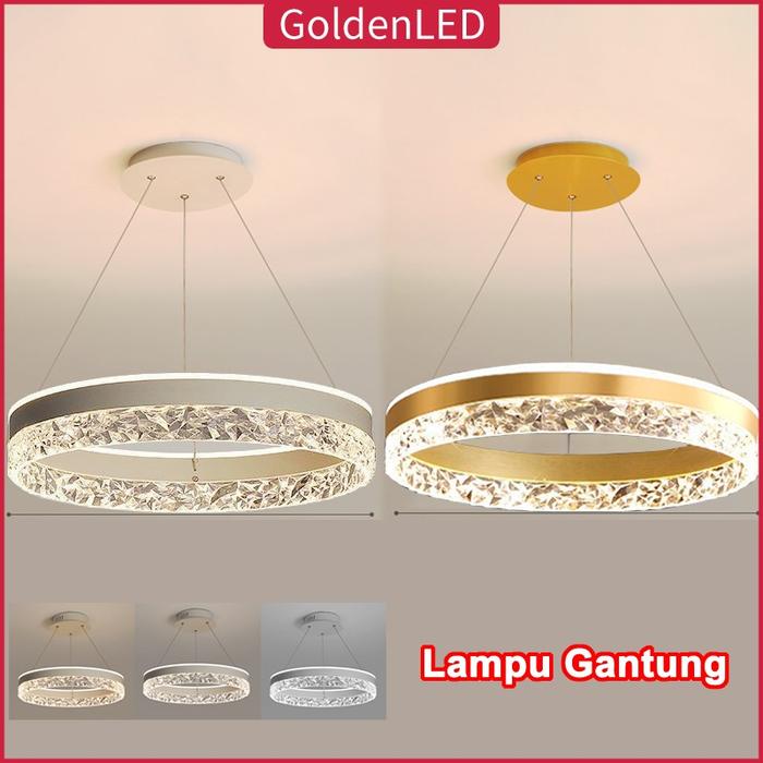 Golden LED Lampu Gantung Kristal 1 Ring Lampu Plafon LED Ruang Tamu Mewah Lampu Gantung Hias 3 Warna