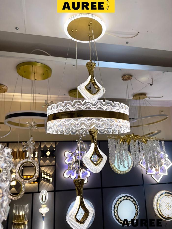AUREE - Lampu Hias Gantung Kristal LED 3 Warna Modern Minimalis Ruang Tamu Kamar Tidur