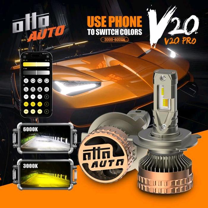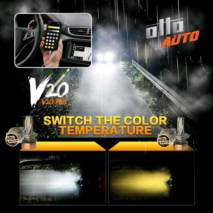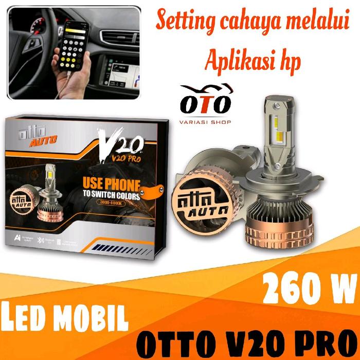OTTO V20 PRO LAMPU LED MOBIL SETTING WARNA CAHAYA MELALUI APLIKASI