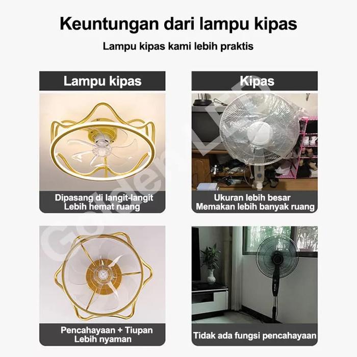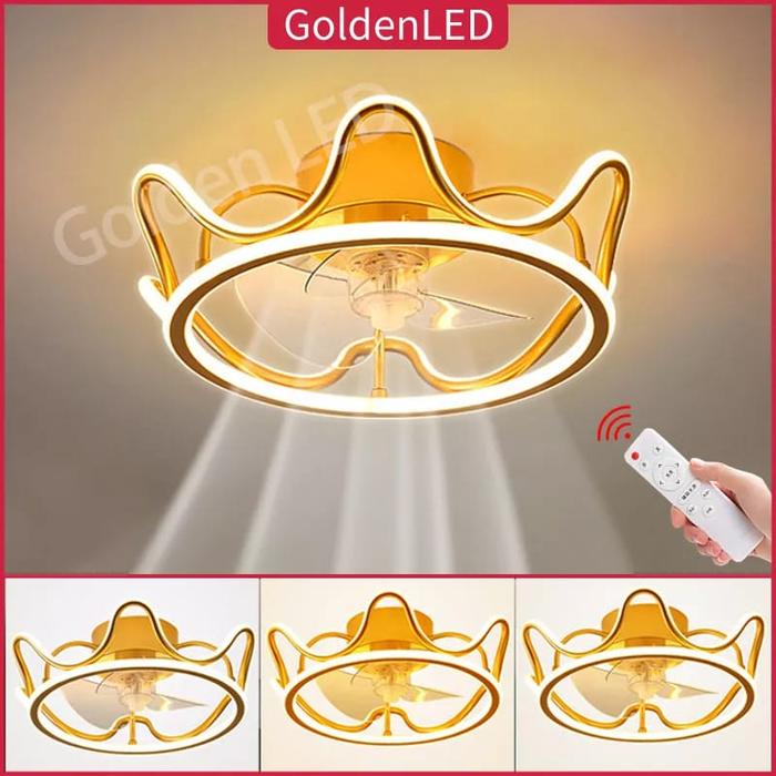 Golden LED Kipas Lampu Gantung GOLD Modern Classic Ceiling Fan Lampu Kamar Tidur Ruang Tamu 68W LED