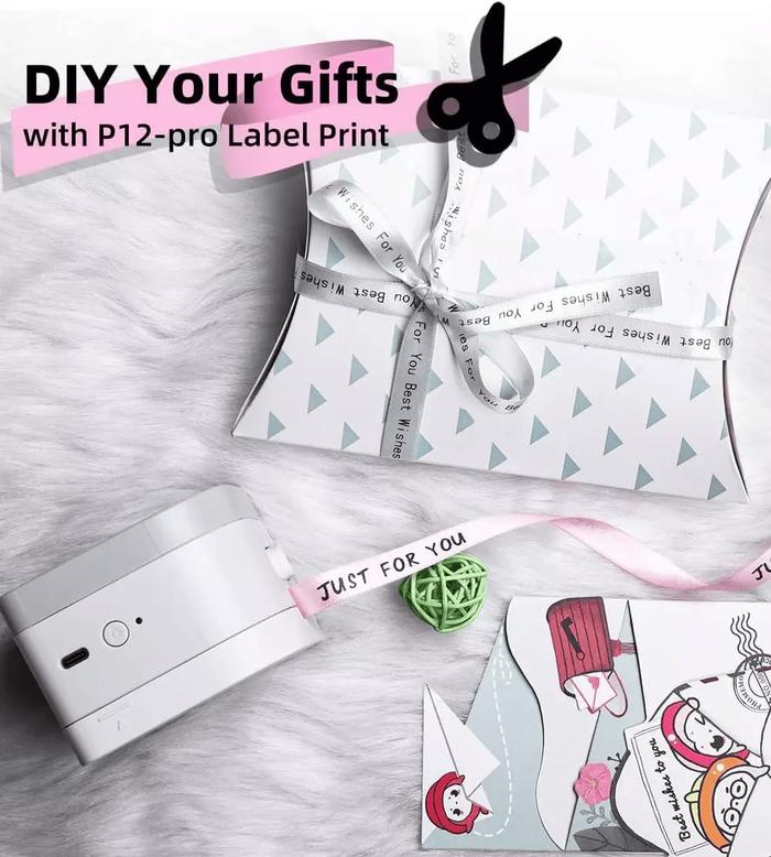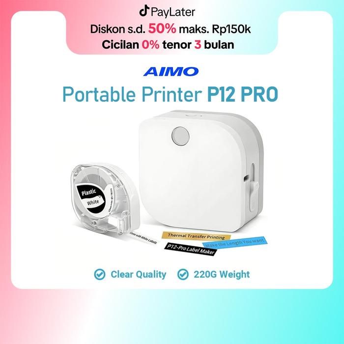 AIMO P12 PRO Pencetak Label Tape Bare Printer Bluetooth Inkless Portable Thermal Printer Label Tanpa