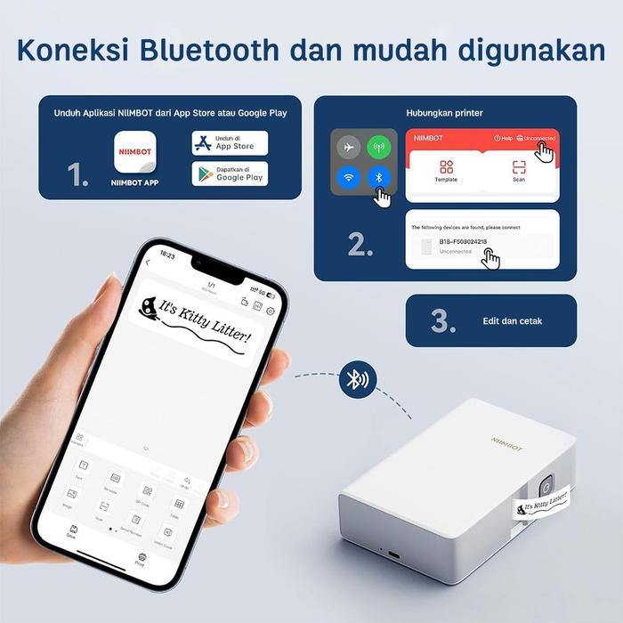 NIIMBOT B18 Pembuat Label , Printer Label Bluetooth Portabel Mendukung Pencetakan Warna, untuk