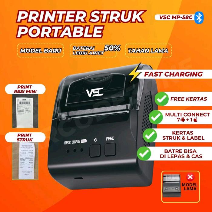 PRINTER BLUETOOTH THERMAL struk VSC MP-58M 58mm 1500Mah