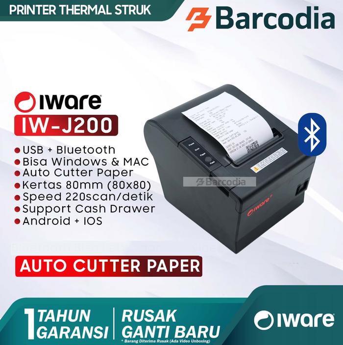 Printer Thermal IWARE IW-J200BT IW J200BT Receipt POS 80mm USB Bluetooth RJ11