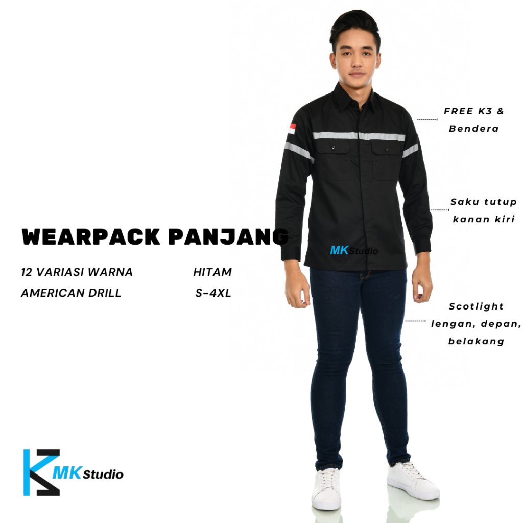 Seragam Kerja Lapangan/Kemeja Safety Lengan Panjang/Baju Proyek Safety/Baju Wearpack/Kemeja Lapangan