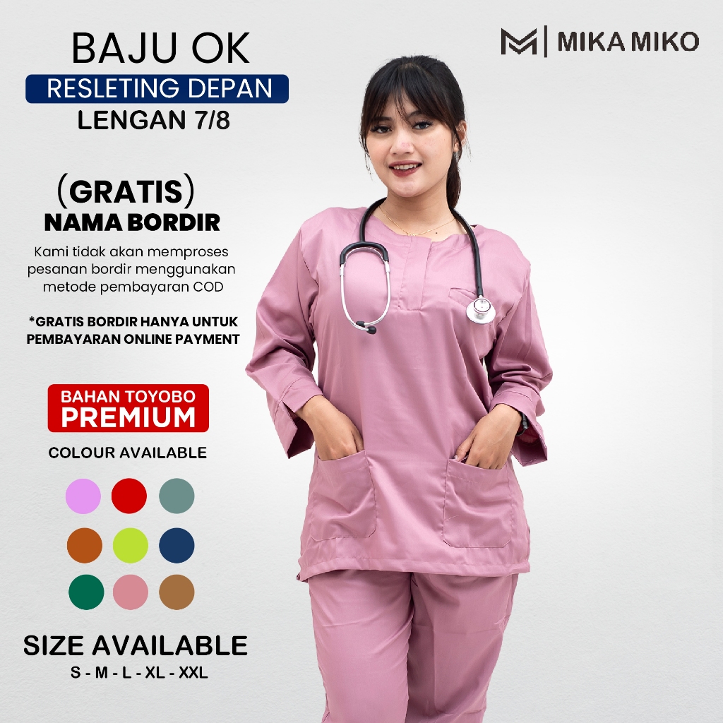 Baju OK RESLETING ( GRATIS BORDIR NAMA ) OKA Lengan 7/8 Scrub Dokter Perawat Baju Jaga Medis Nakes Bahan Toyobo Premium
