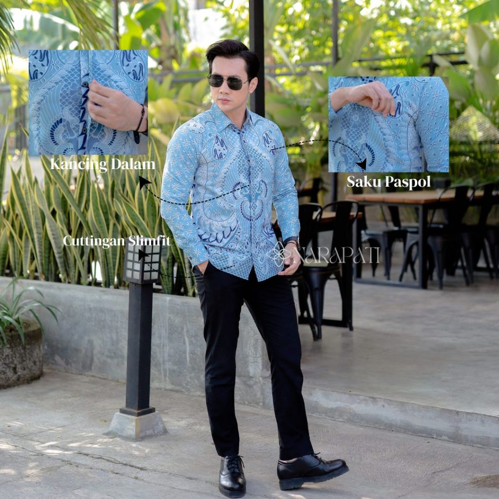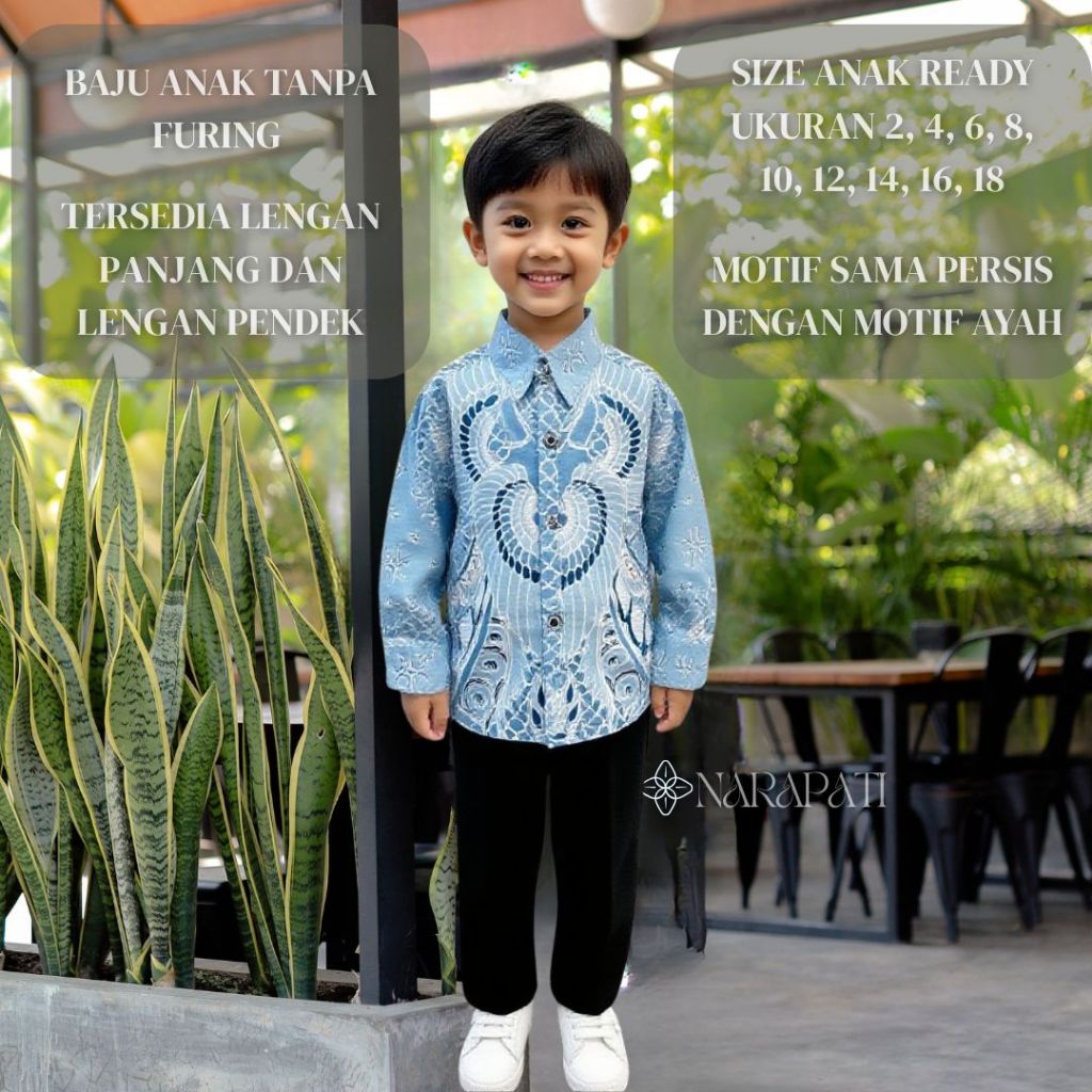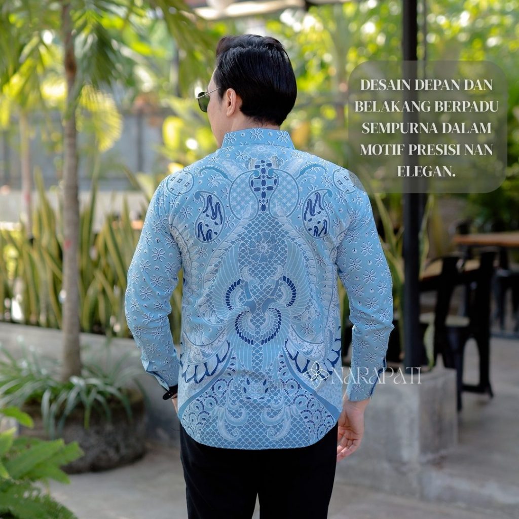 BATIK NARAPATI COUPLE AYAH ANAK Batik Premium Pria Slimfit Lengan Panjang Bahan Cotton Combed 40s Furing Erro Full Body Motif Presisi - BN004 BABY BLUE