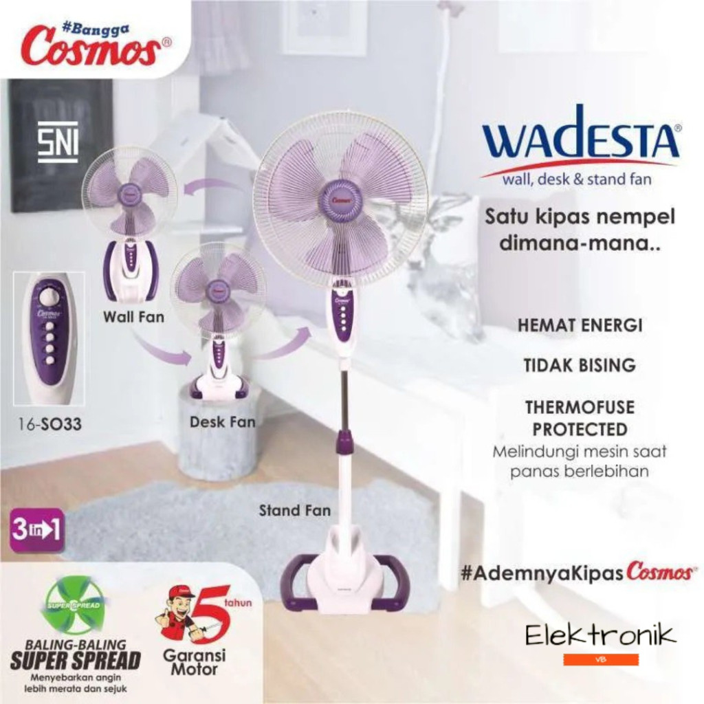 Kipas Angin Cosmos 3 in1 Wadesta (Wall, Desk, Stand) 16 S033
