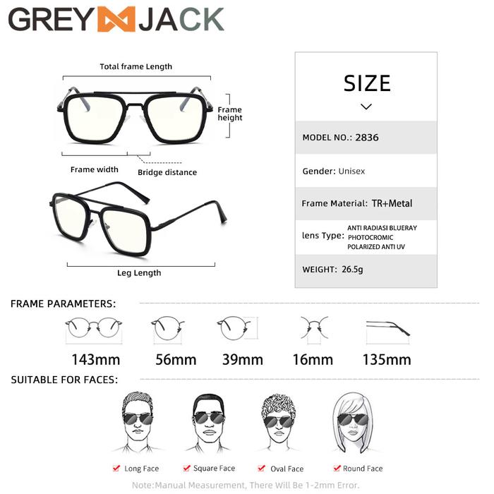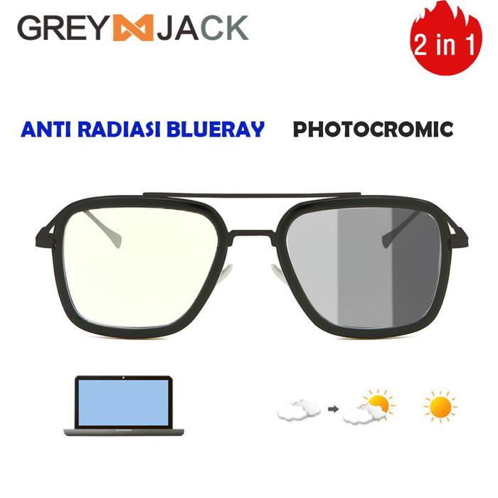 Kacamata Pria/Grey Jack/Tony Stark Anti Radiasi Photocromic 2836 - 3 In 1