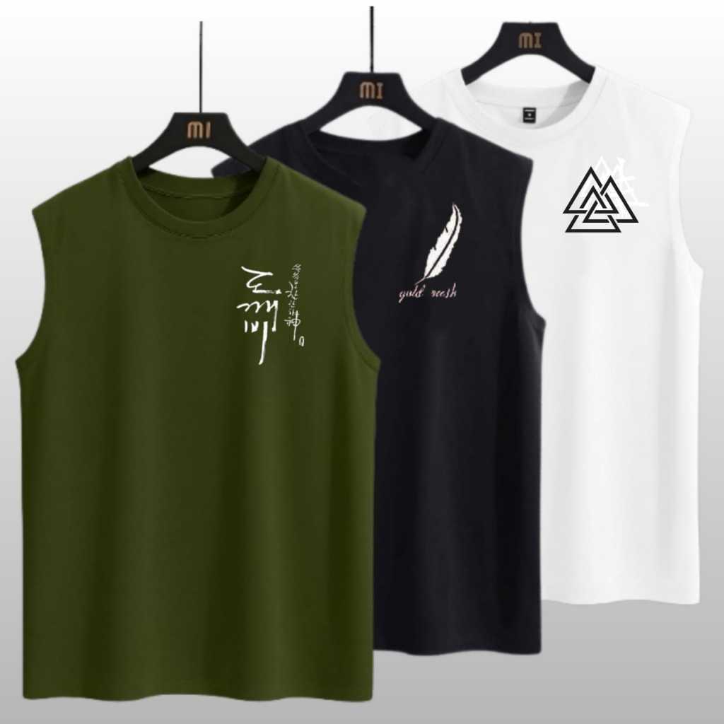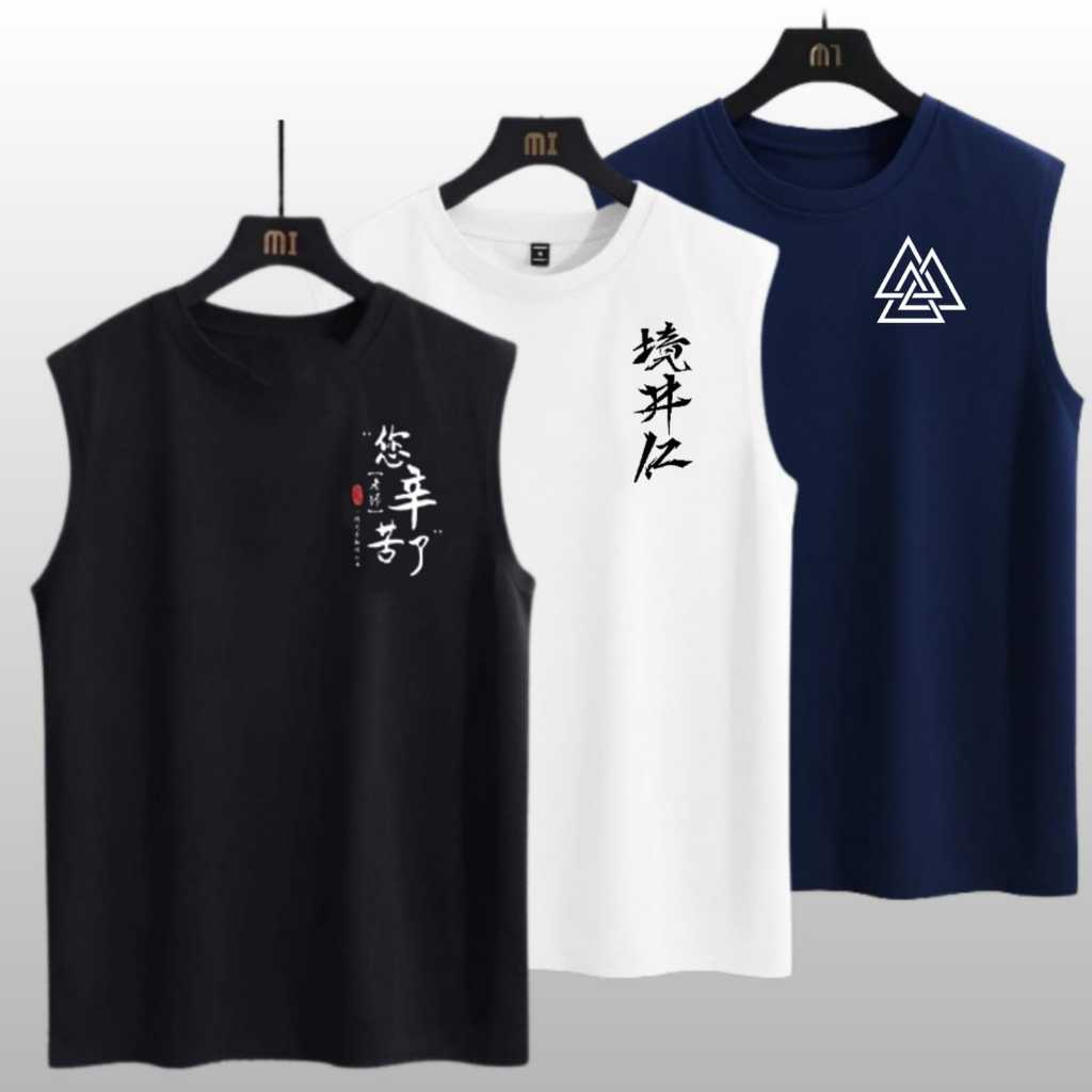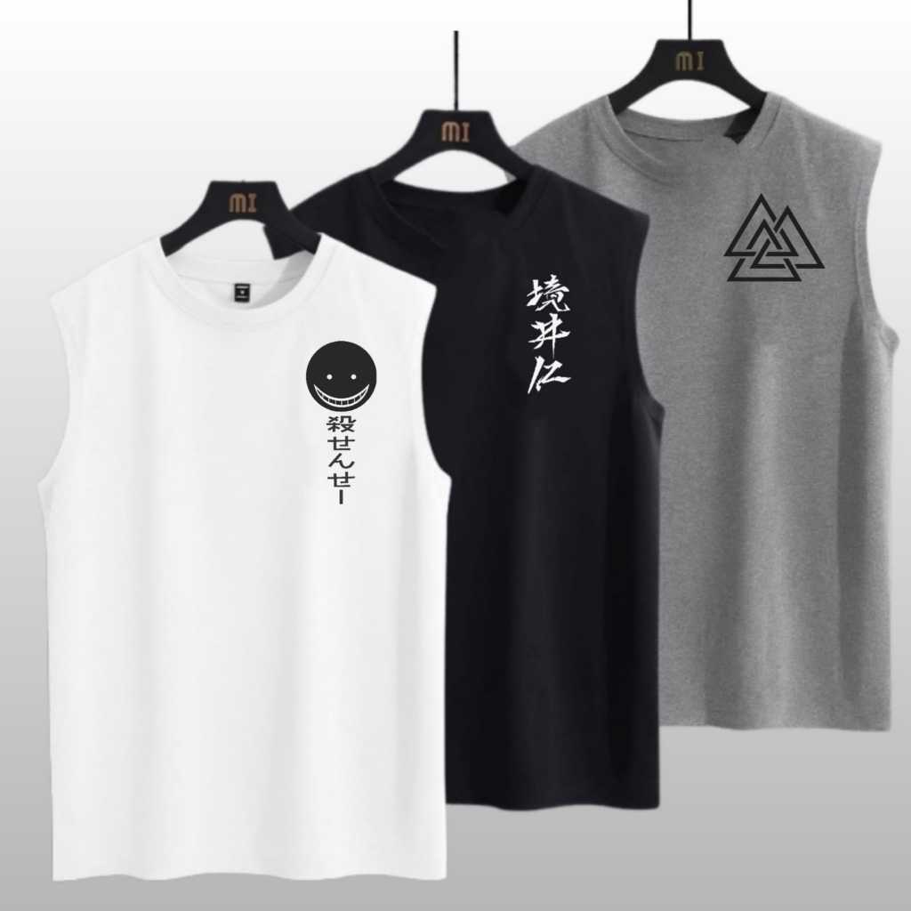 Paket Hemat 3 Pcs Kaos Singlet Lekbong Distro / Kaos Singet Pria ( 3 Motif )