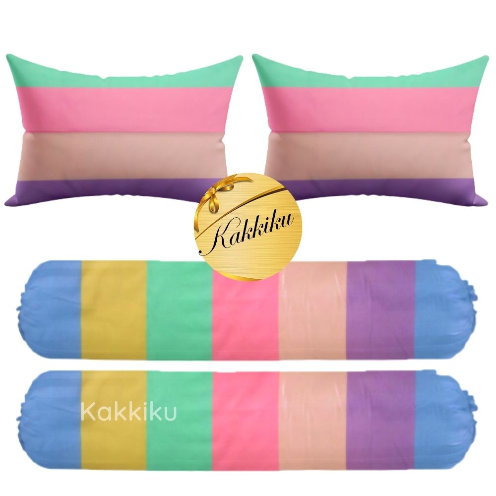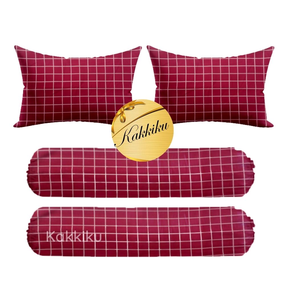 4 pcs 2 Sarung bantal + 2 Sarung Guling motif Aaesthetic Cotton Kotak Garis dan Karakter