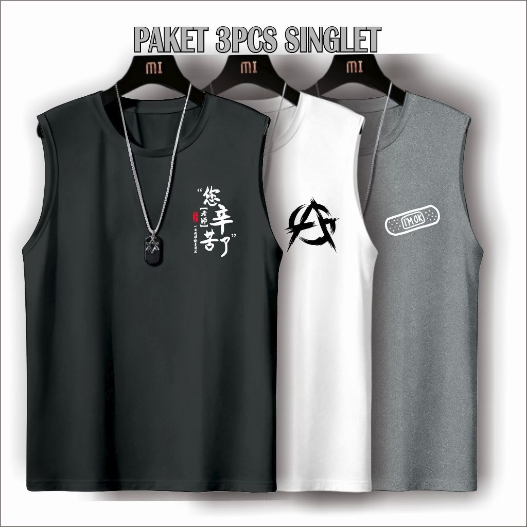 Paket Kaos Singlet Lekbong Pria Dewasa Isi 3pcs / Kaos Dalaman Cowok Trendy