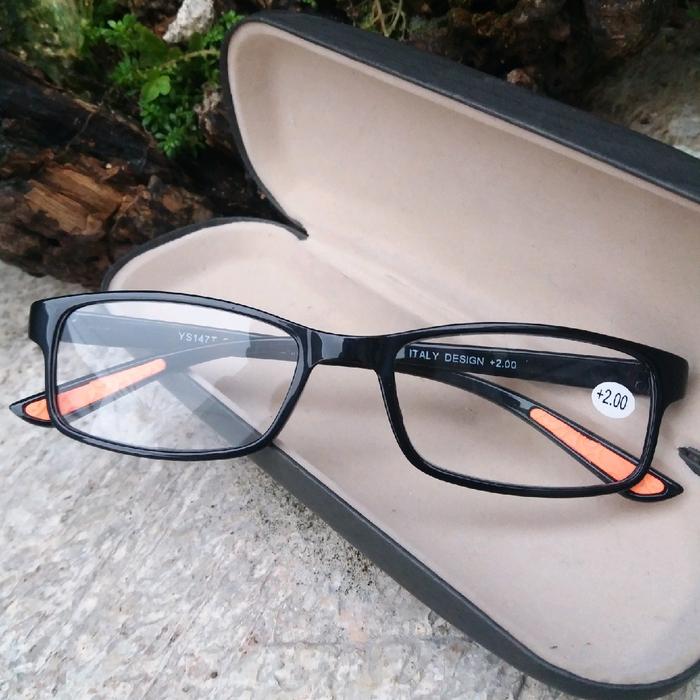 Beli 1 Gratis 1 Kacamata Baca Tangkai Lentur Anti Patah +0.50 Sd +4.00 Pria Wanita Gratis Box Lensa Bening - Hitam,
