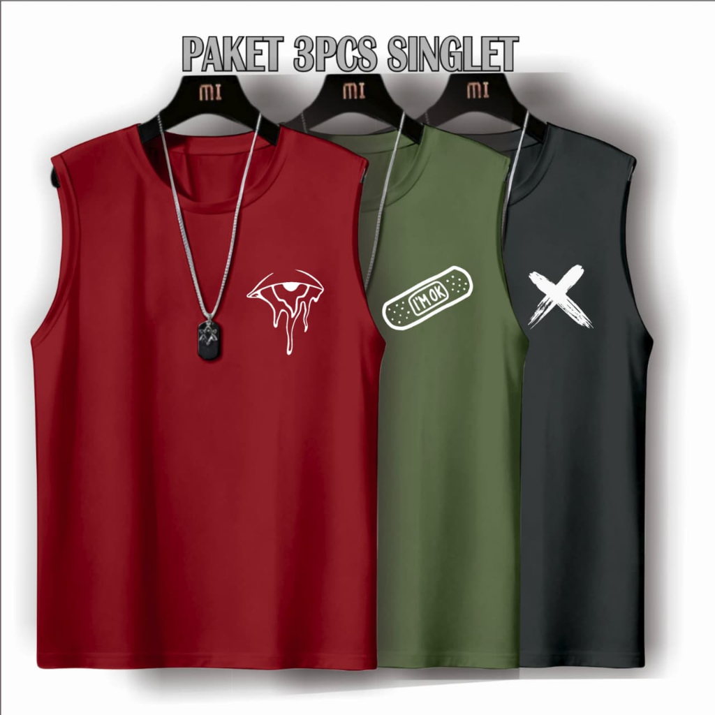 Singlet Lekbong Unisex Paketan 3 pcs CUMA 50ribu Singlet Santai Gym / Paketan Singlet Motif Simple
