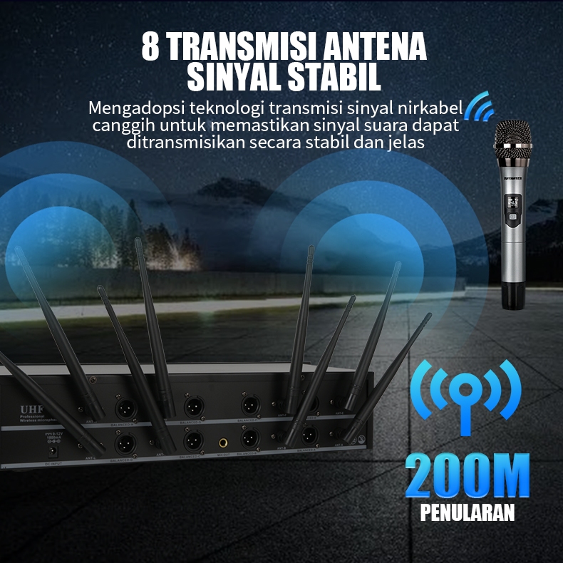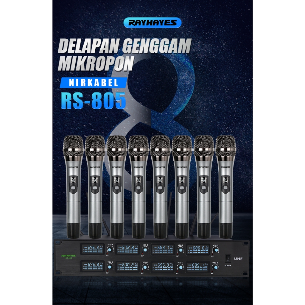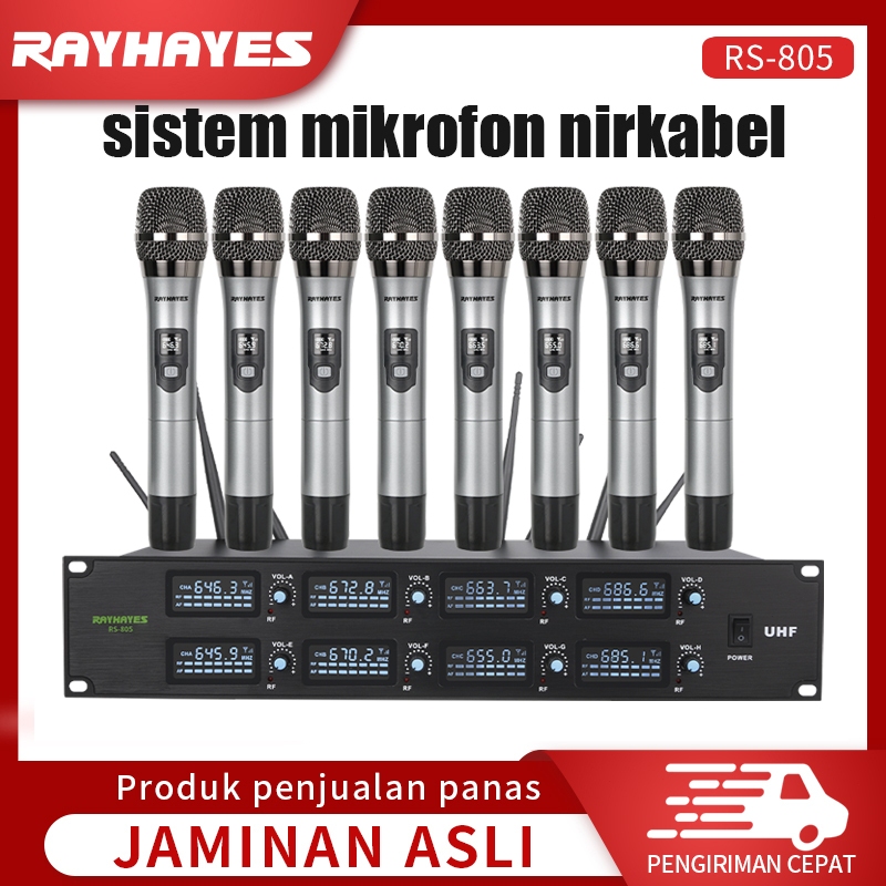 Mikrofon Nirkabel RAYHAYES dengan 8 Genggam, Frekuensi yang Dapat Disesuaikan untuk Pesta Karaoke Gratis Ongkir