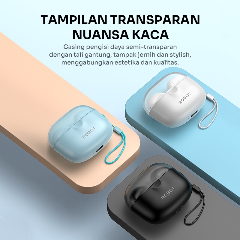 ROBOT TWS Earphone Bluetooth 6.0 Earphone Wireless Casing Transparan Ultra Bass Enco Buds 3 Original - Garansi 1 Tahun