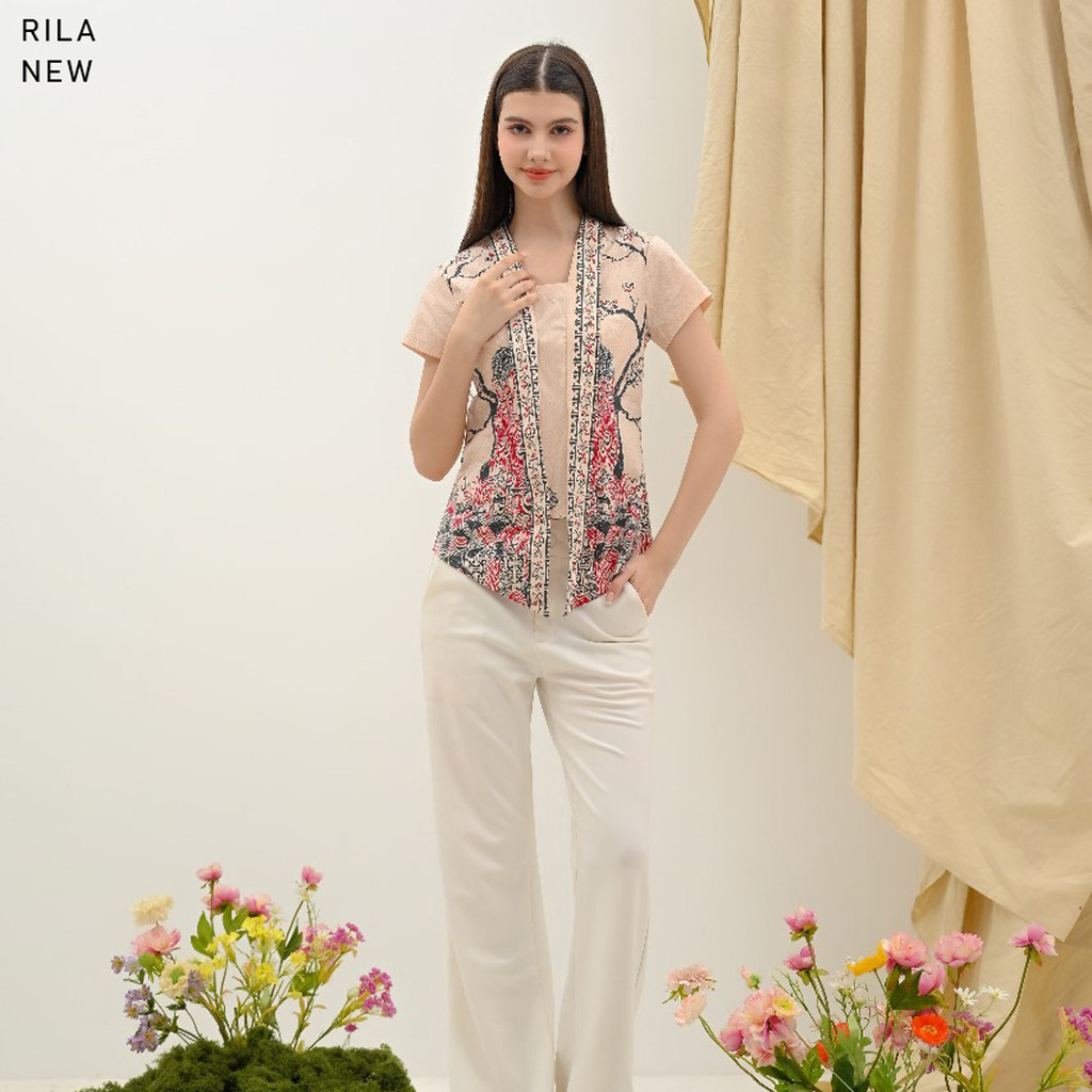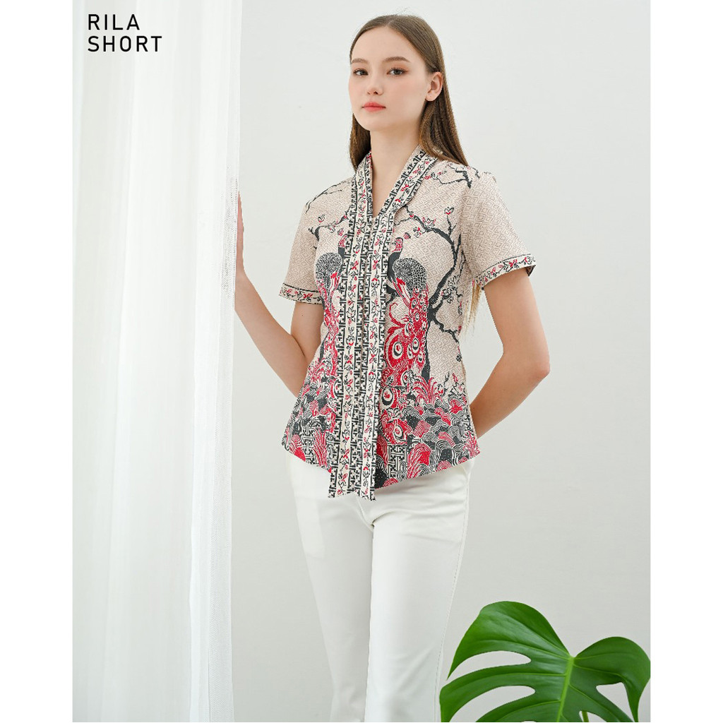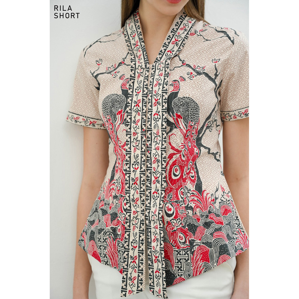 Evercloth Rila Kutu Baru Batik Kebaya Encim Blouse Batik Perempuan Lengan Panjang Baju Batik Cewek Pendek Kebaya Modern Sarimbit Hem Couple Cream Nude Motif Burung