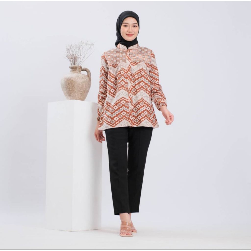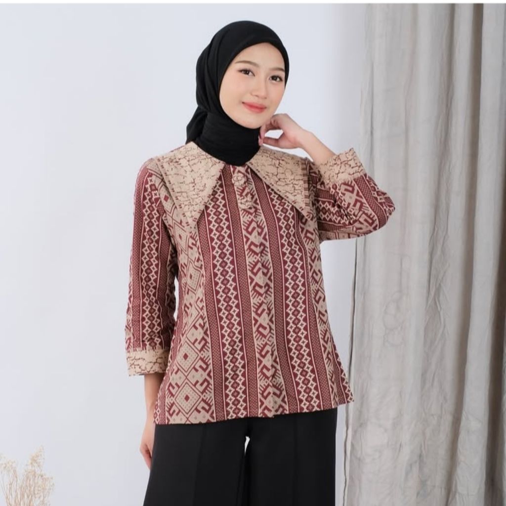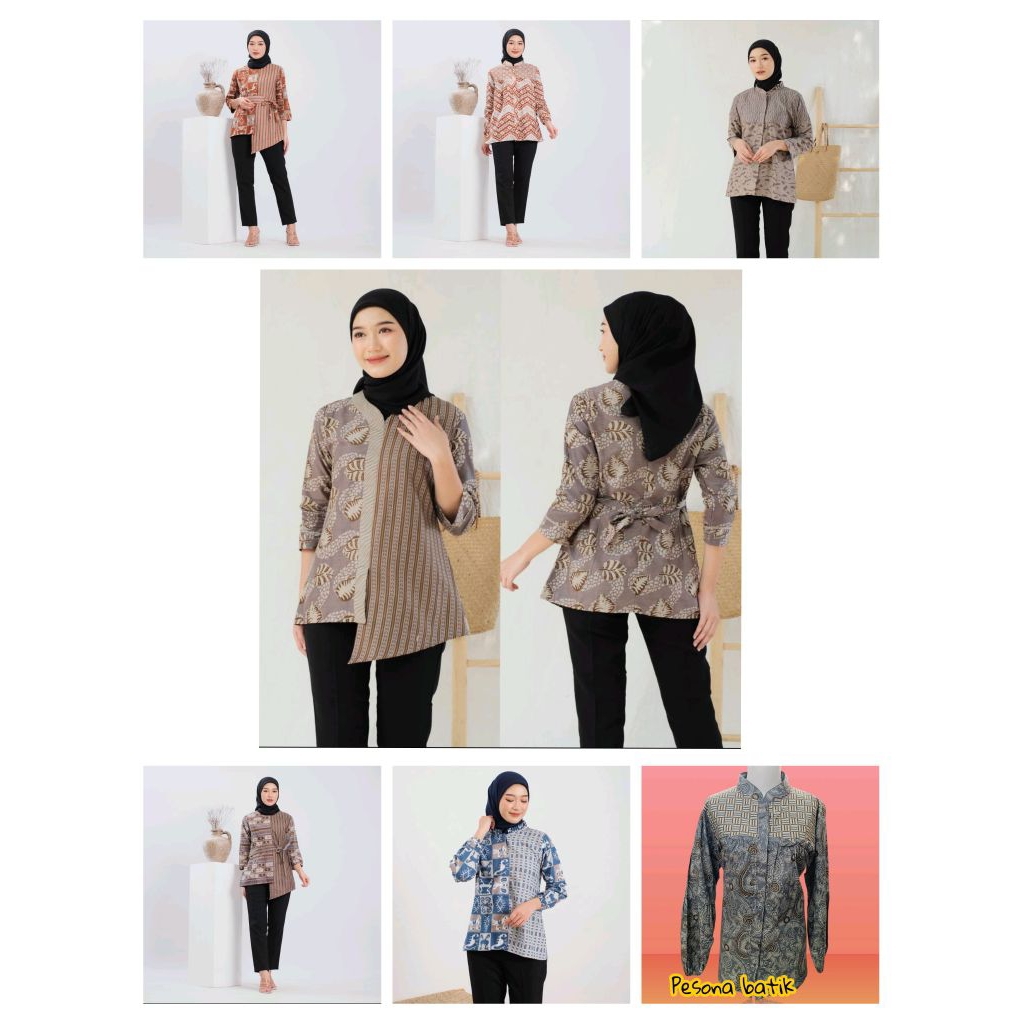 batik atasan kantoran wanita terbaru/batik kantoran/batik modern wanita/batik wanita cotton ready