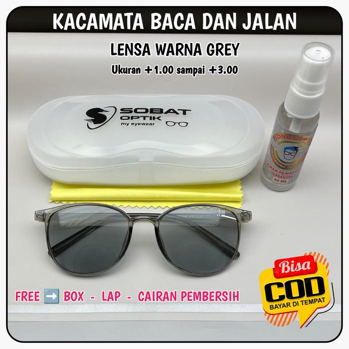 Kacamata Baca Dan Jalan Lensa Warna Grey Pria Dan Wanita Ukuran +1.00 Sampai +3.00 - Oval, +1.00