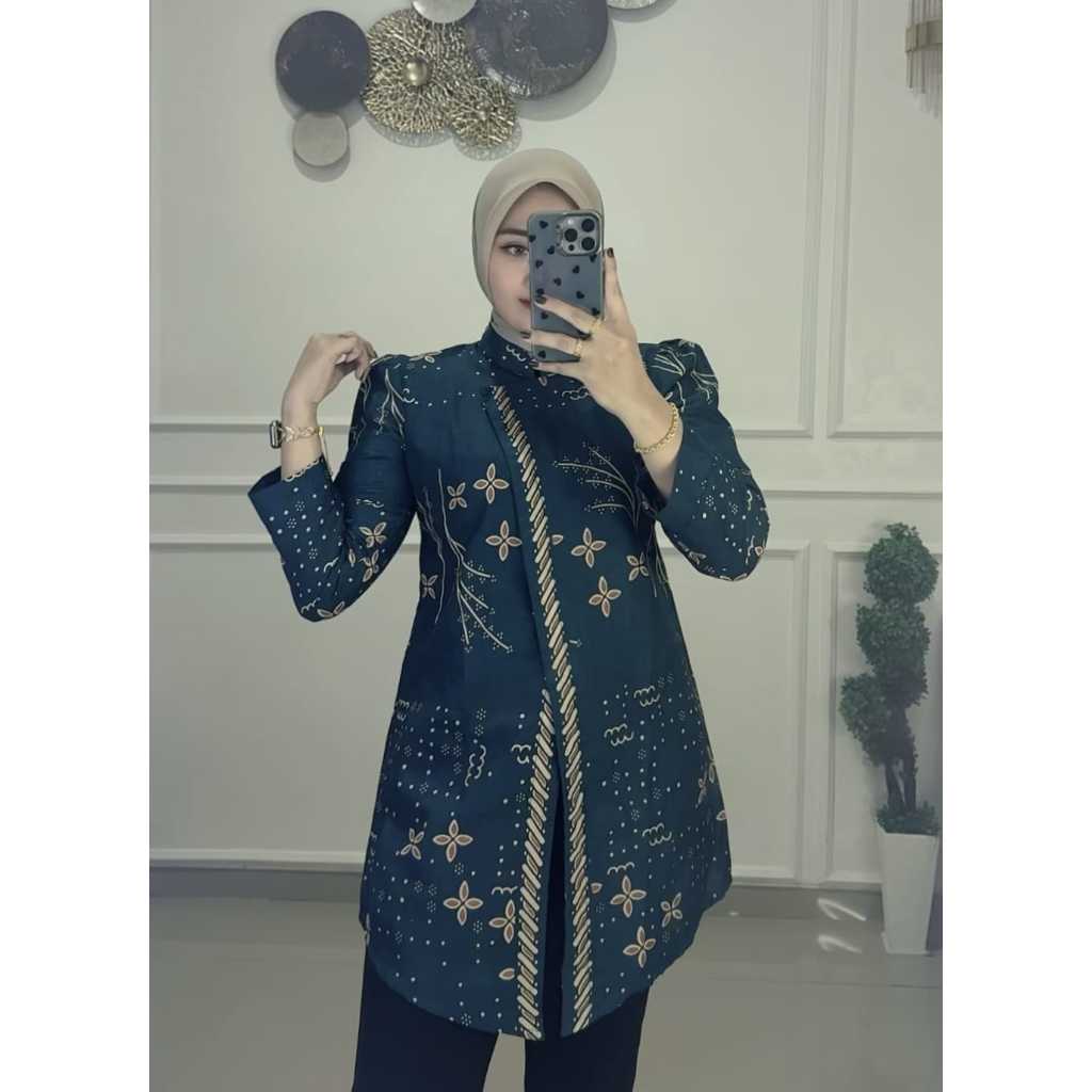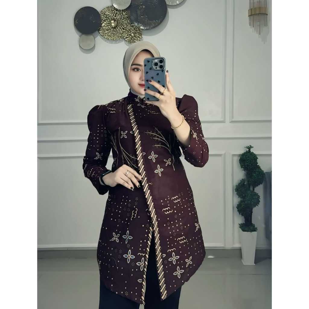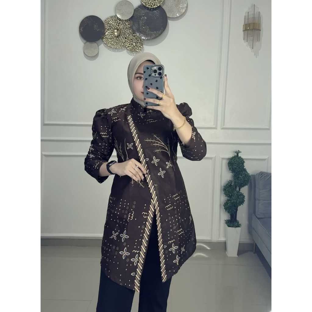Atasan batik wanita modern lengan panjang puffy blouse model kebaya janggan by ratu laku batik baju formal
