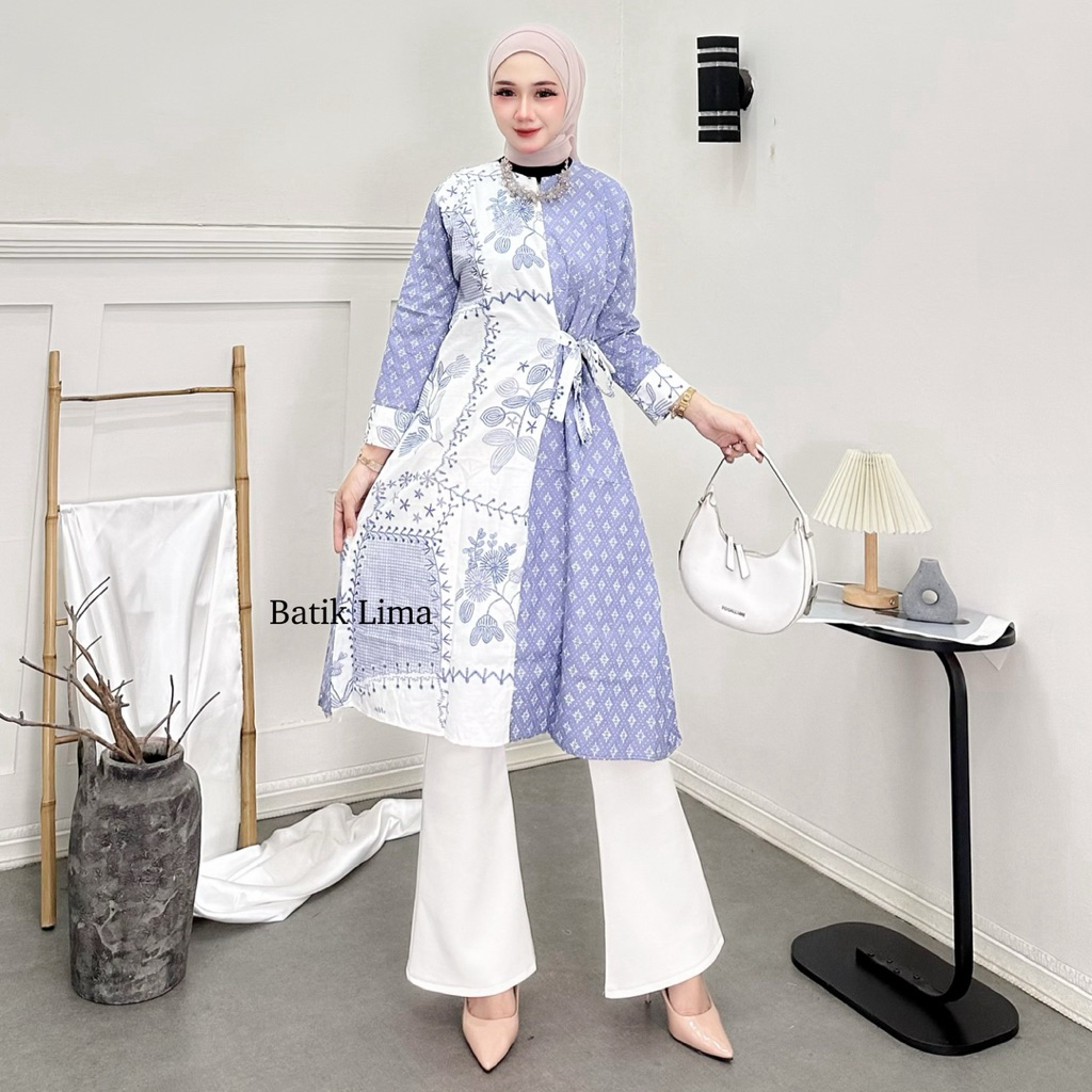 Tunik Batik Wanita Modern Atasan Fashion Muslim Wanita Baju Batik Wanita Panjang ( Bordir )