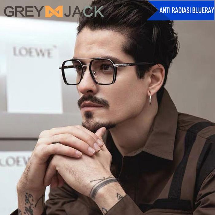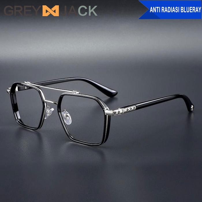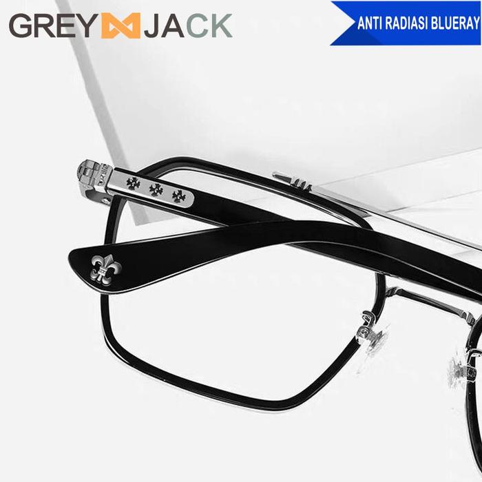 Grey Jack Kacamata Anti Radiasi Blueray Tr90 Metal Retro Design Pria Dan Wanita Dewasa Bisa Minus 0039 - Grey, Blueray N