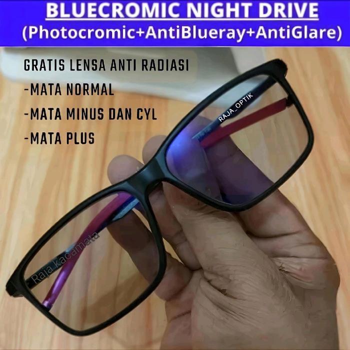 Kacamata Baca Plus Pria Anti Radiasi Minus Bluecromic Drive Photocromic - Hitam Merah, Antiradiasi.