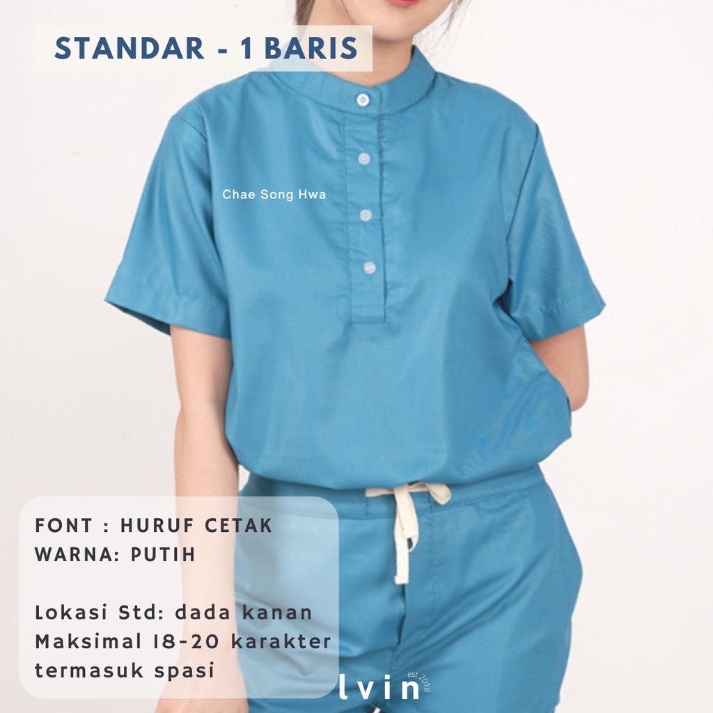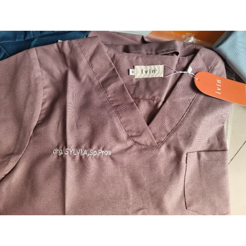 Bordir nama Baju OKA / baju jaga OK / baju perawat / Seragam klinik Lvin