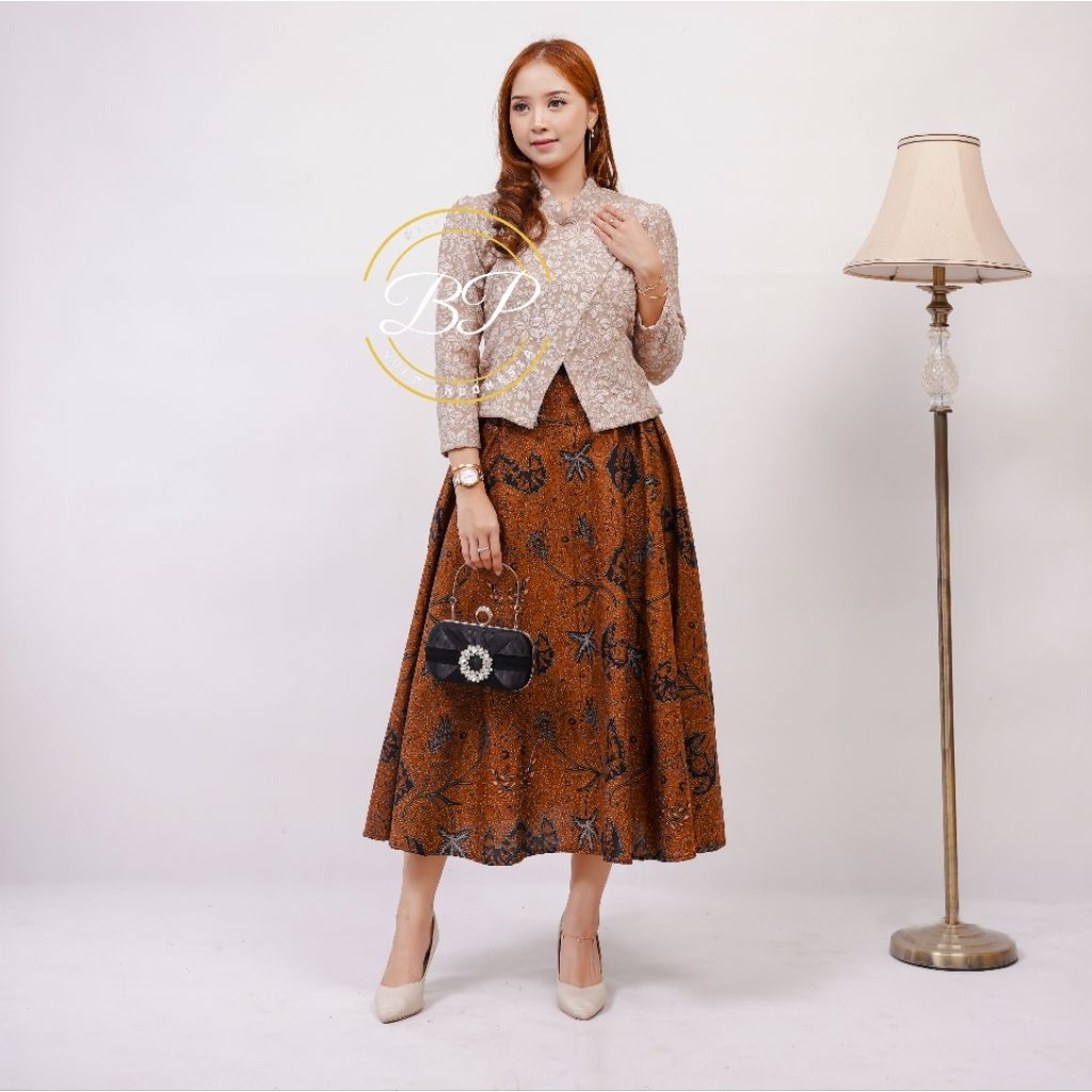 BATIKPAKDE - Sogi Set Kebaya Janggan Croptop Puffsleeve dan Flare Skirt Batik Klasik Ukuran XS S M L XL XL