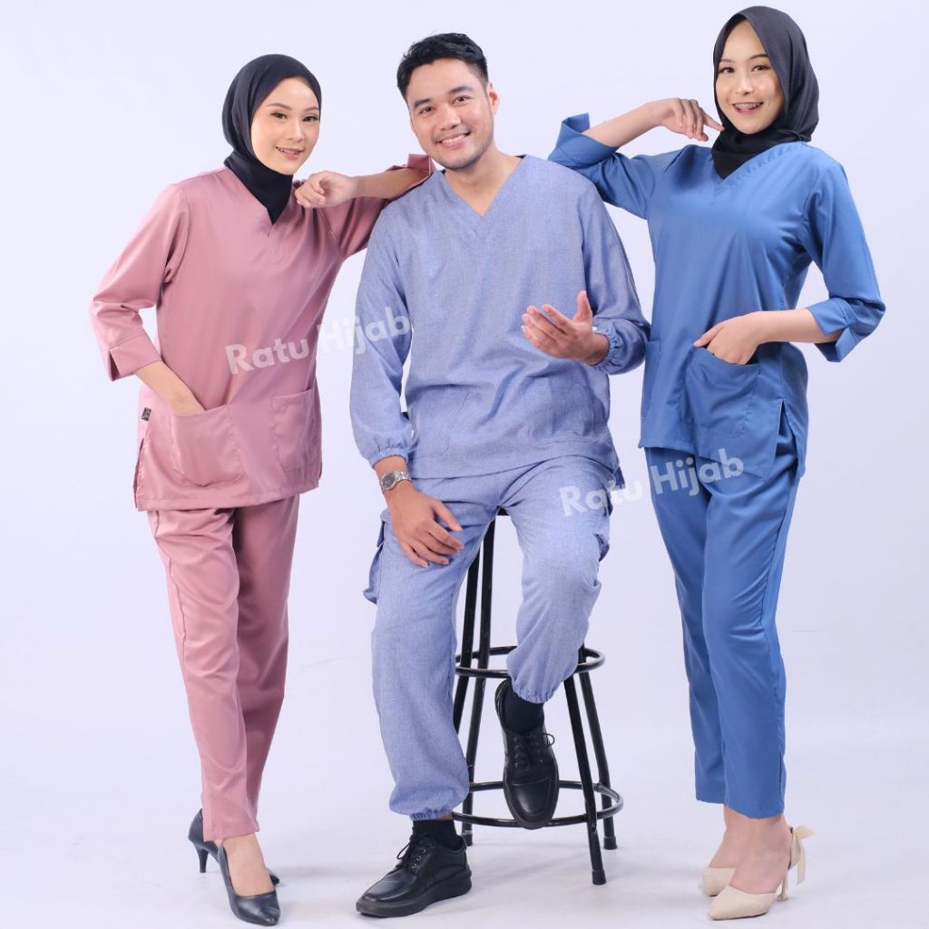 Baju OK Lengan 7/8 One set Jaga Perawat Nakes Pakaian Seragam Kerja Bidan Dokter BahanToyobo