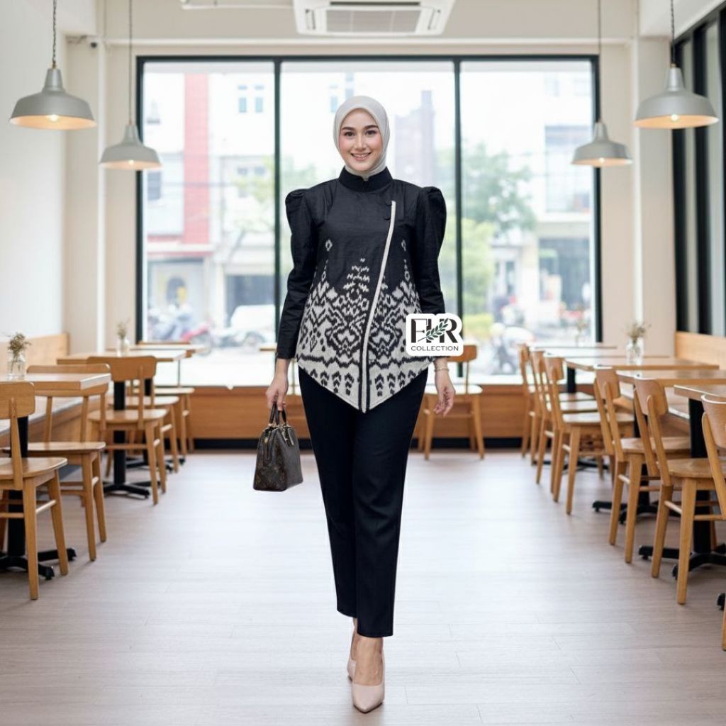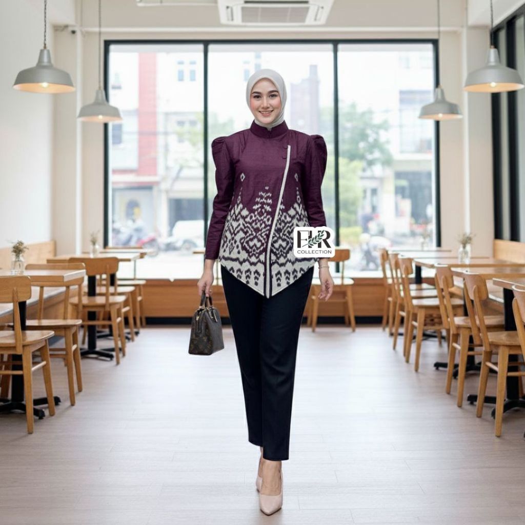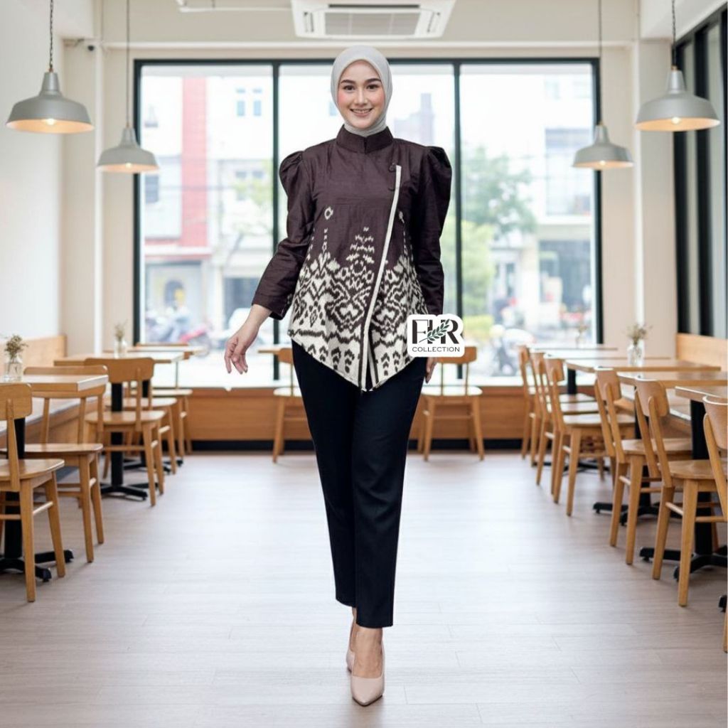 Atasan Blouse Batik Wanita Modern Lengan Panjang Seragam Kantor Kerja