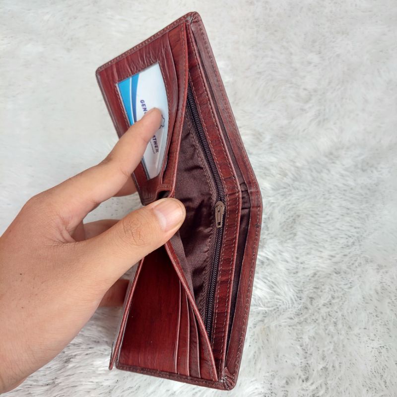 dompet kulit sapi motif serat kayu TAHAN API / dompet pria / kulit 100% asli