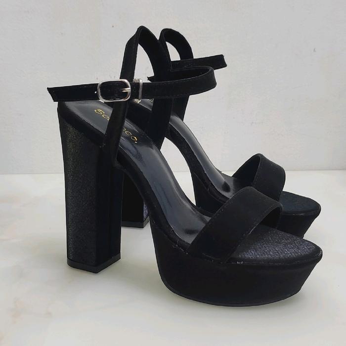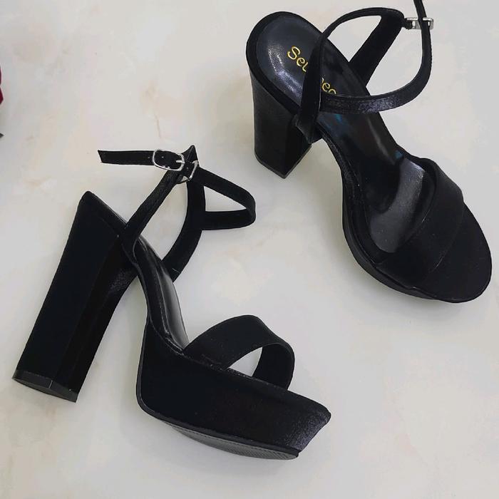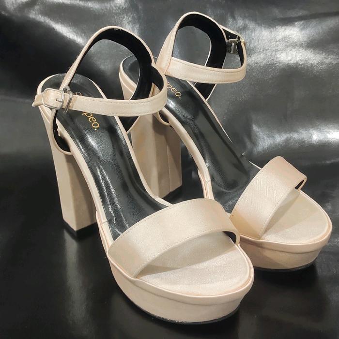 Sepatu Heels Wanita high heels 13cm big Chunky bahan satu satin premium
