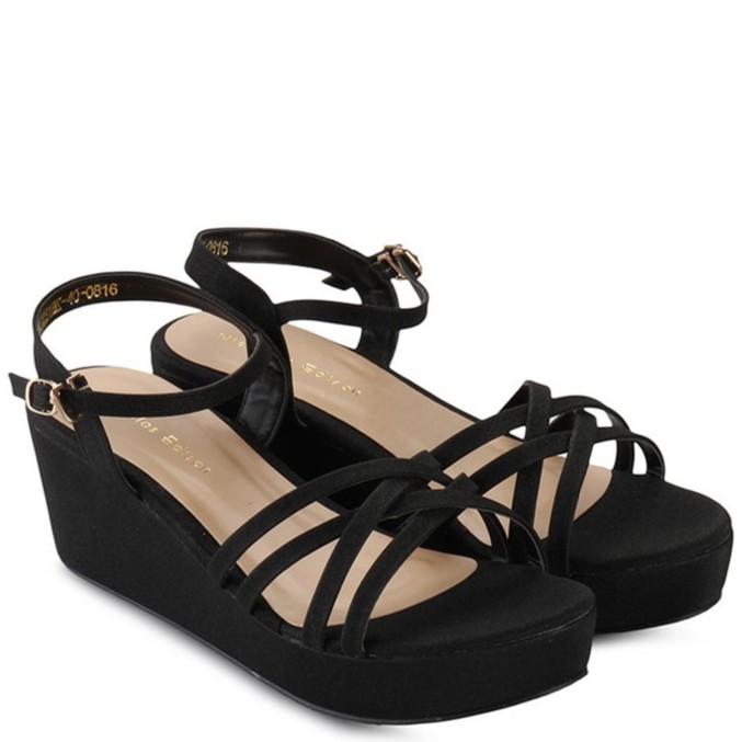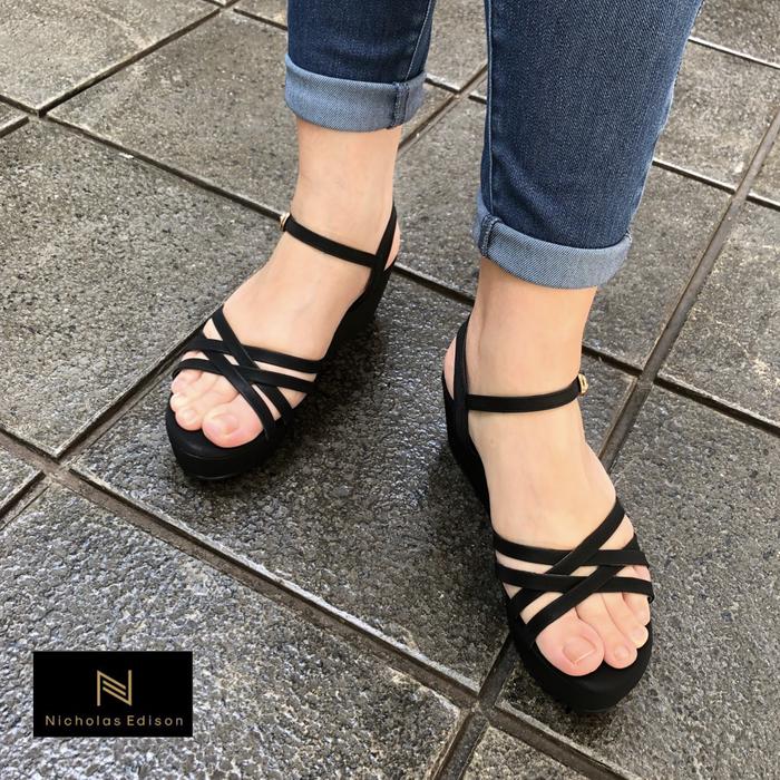 Sepatu Heels Wanita Nicholas Edison Wedges Felda Black Strappy Slingback