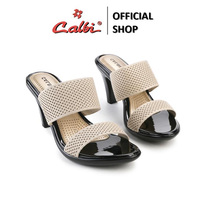 Sepatu Heels Wanita CALBI BB 1898 Sandal Hak Tinggi Slip-on Perempuan 8cm Rajut OOTD Kekinian Ellory
