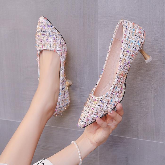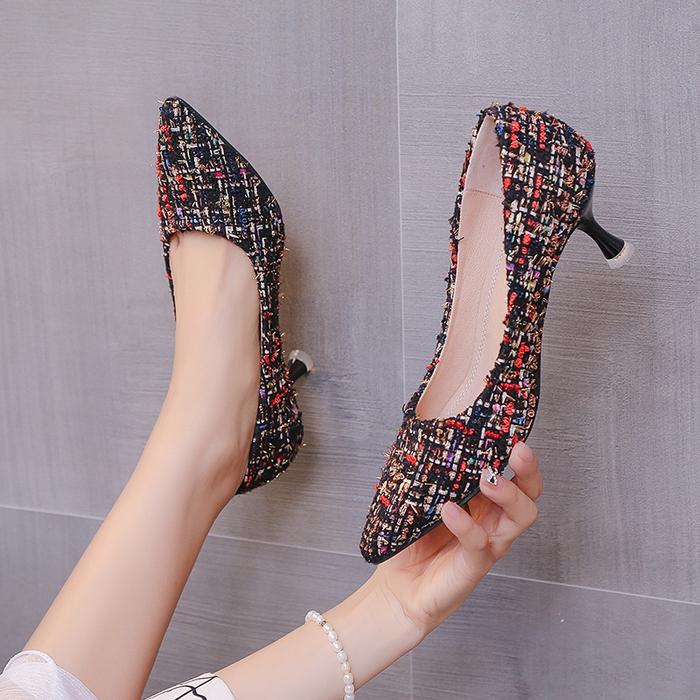 Sepatu Heels Wanita COLINE CLN-736 Heels Tweed / Sepatu Nylon Wanita #C1125 Karet Shoes
