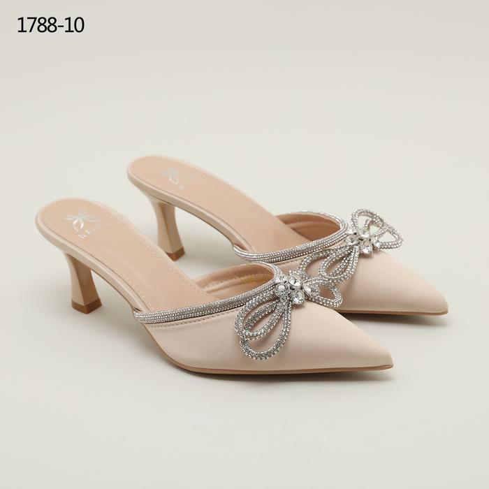 Sepatu Heels Wanita HELIVA KYLIE High Heels Wanita Pesta Pointed Toe Pita Rhinestone Sol 6.5cm