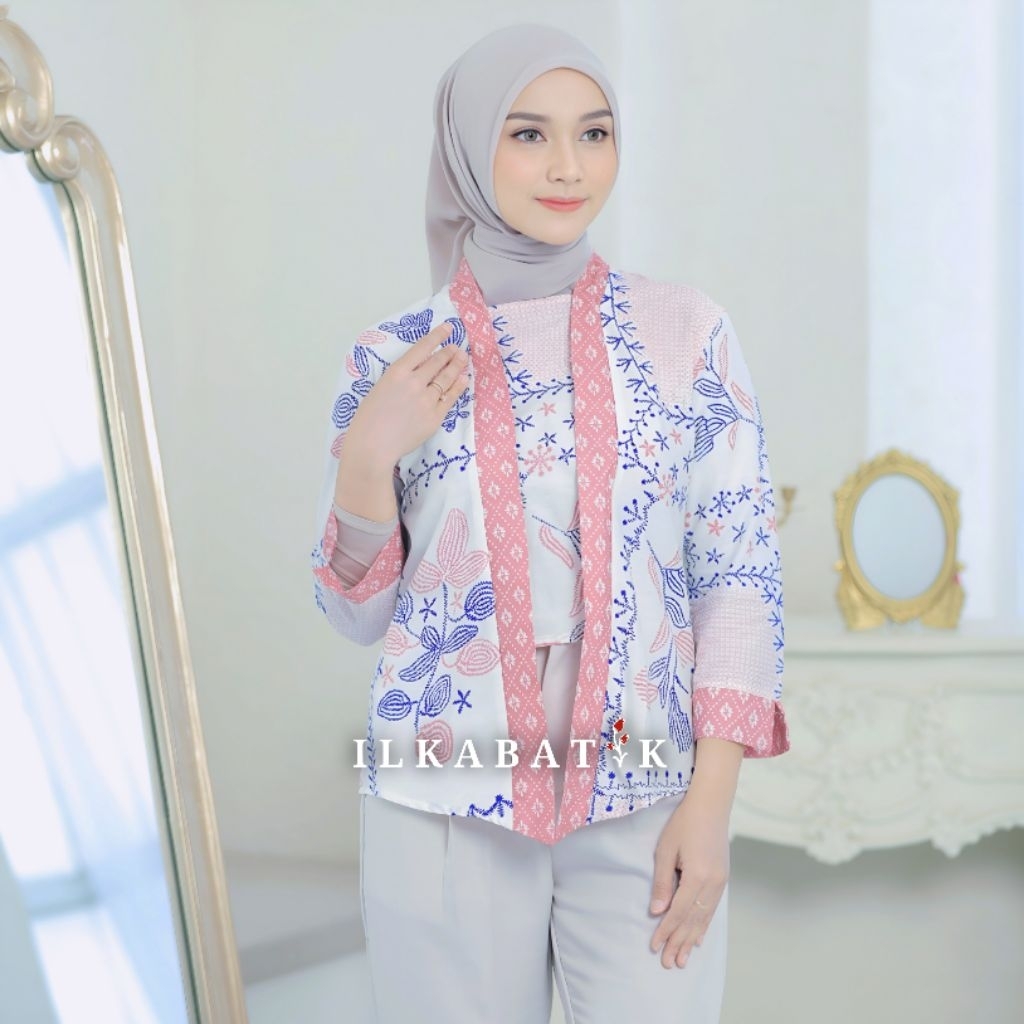 ILKABATIK Anjani Blouse Batik Kutu Baru Lengan 3/4 Batik Soft Cantik Kondangan Kantor Kerja Wanita