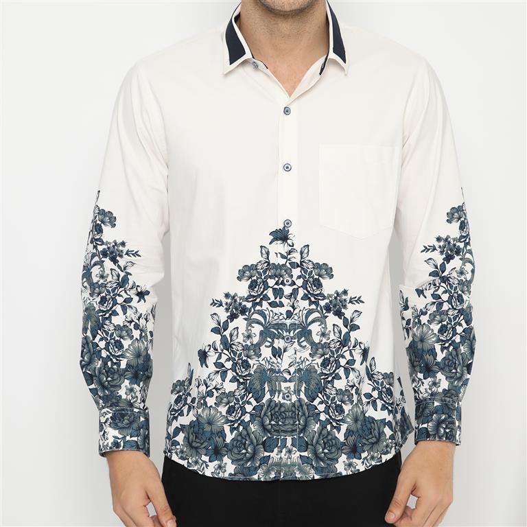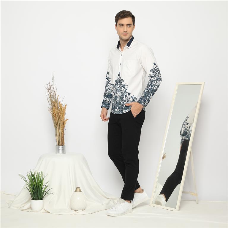 LUIGI RICCIO Kemeja Batik Pria Sampai 5XL Simple Casual Kerja Kantor Dewasa White Series Couple Series