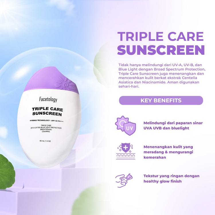 Facetology [IN V1VO & NON COMEDOGENIC SUNSCREEN TESTED] Triple Care Sunscreen SPF 40 PA+++ 40ML Original BPOM