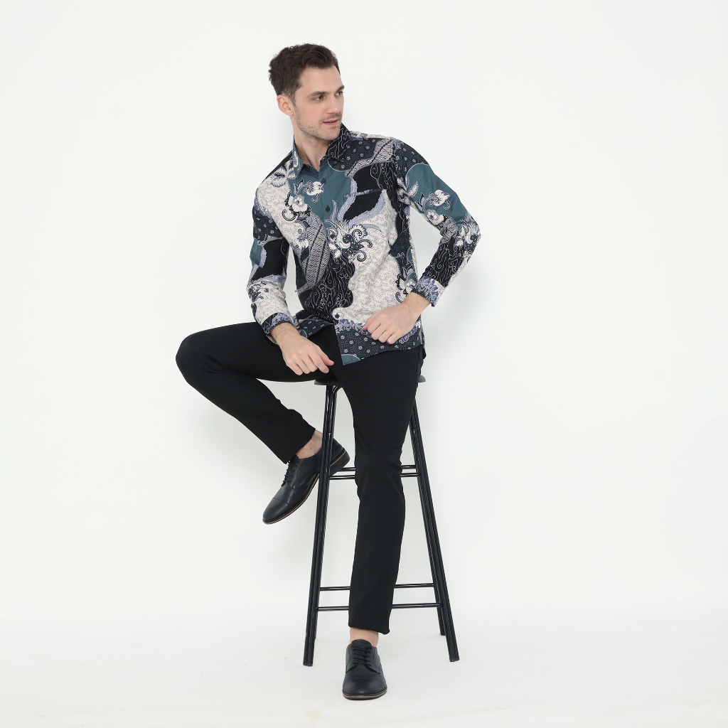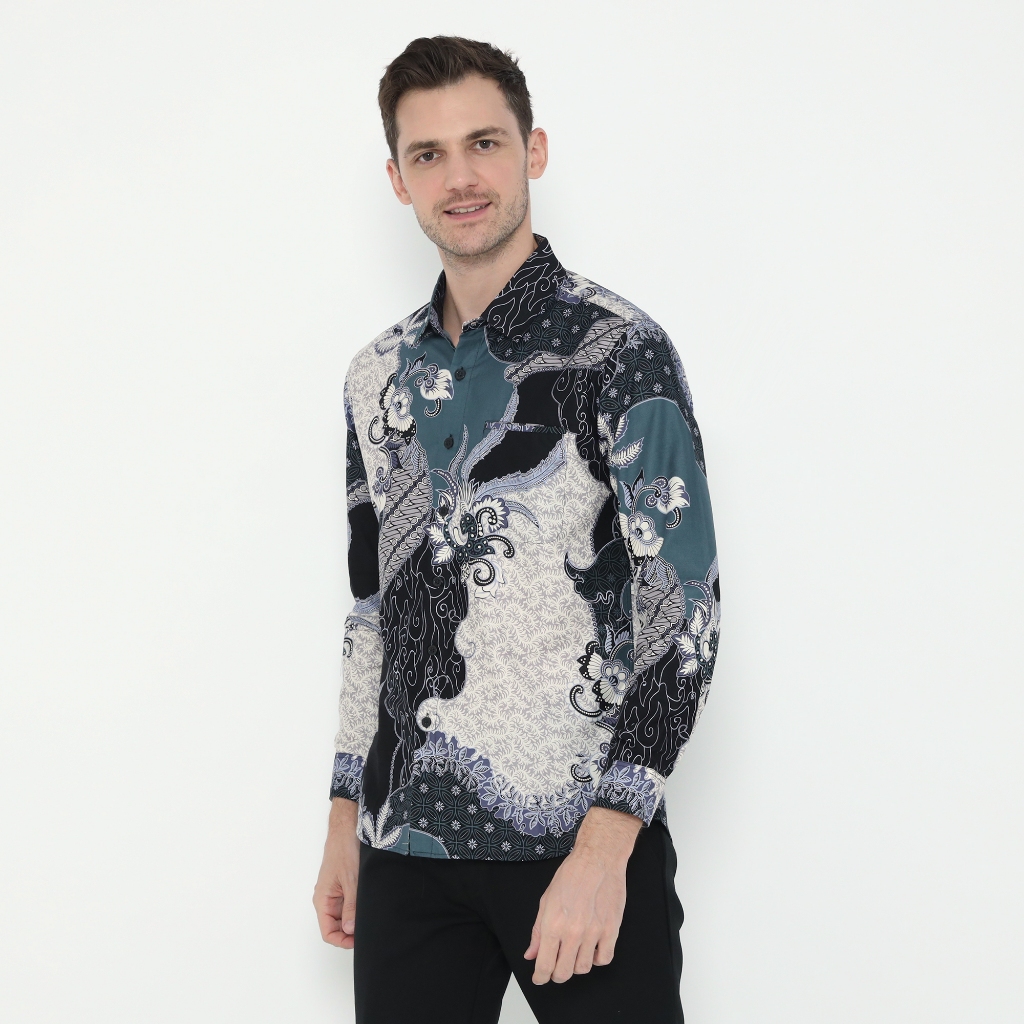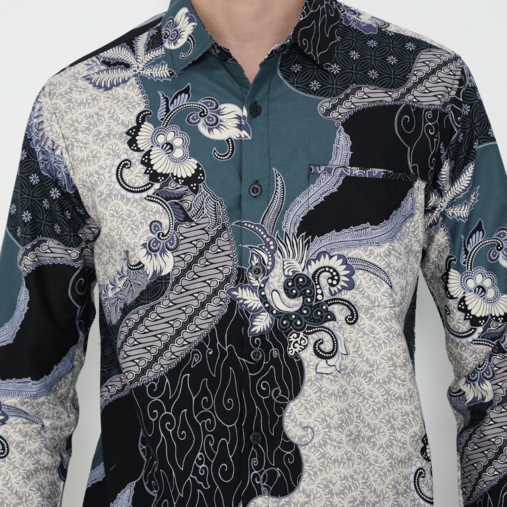 Kemeja Batik Pria Atasan Batik Modern Lengan Panjang Warna Hijau OLR294