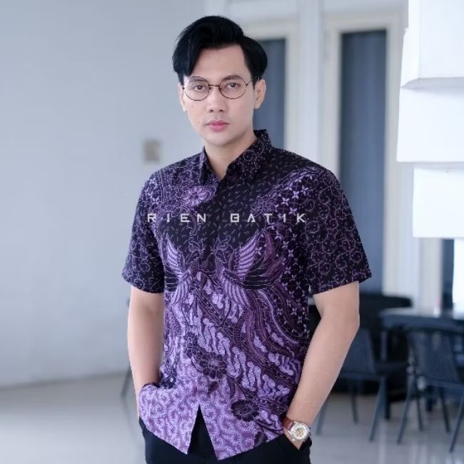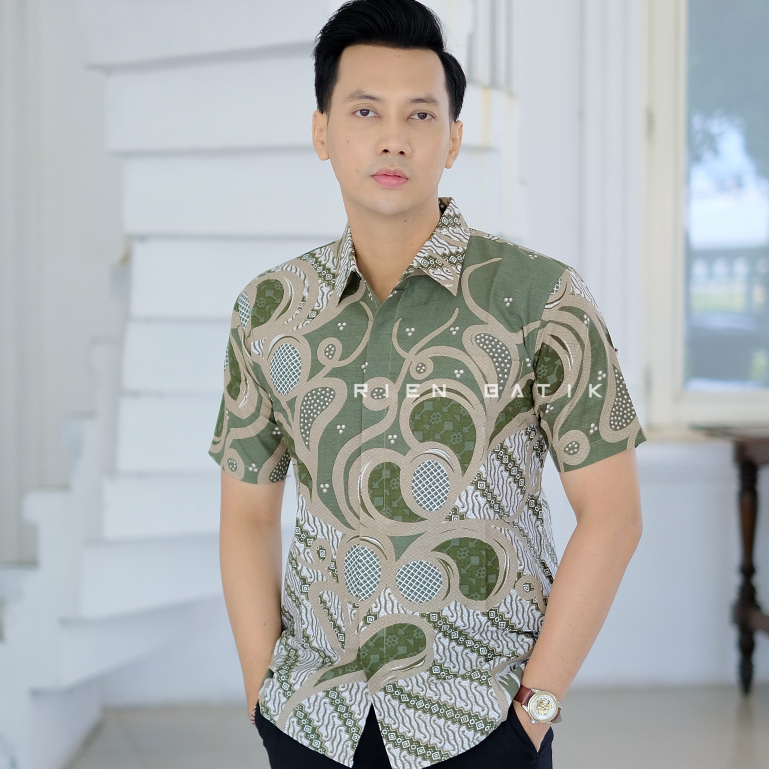 Kemeja batik pria SLIMFIT lengan pendek bahan katun lapis furing premium MOTIF RIEN BATIK Sragenan