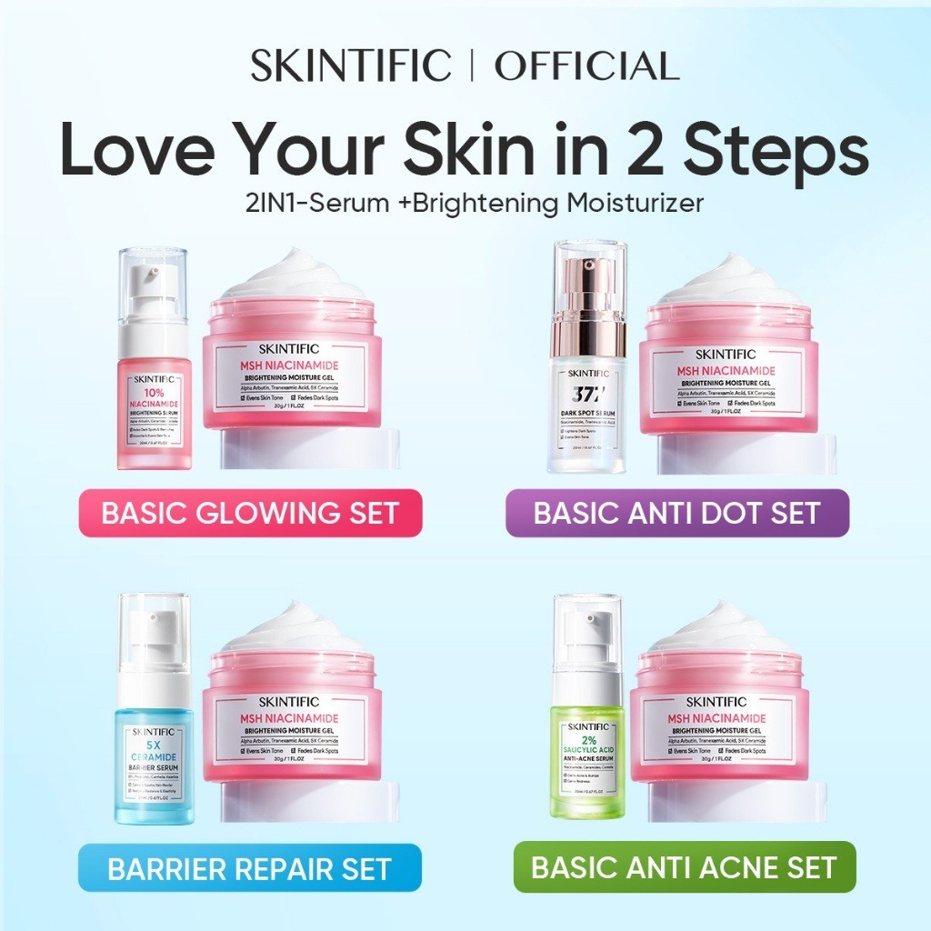 Skintific Official Store 2pcs Paket Basic Set Skincare Wanita Glowing Bpom Skintific Moisturizer Sunscreen Serum